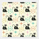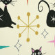 Das ist ein niedliches, schwarzes, atomares Katzenmuster mit Retro-Sternexplosionen aus der Mitte des Jahrhunderts in Rosa, Orange und aquamarin auf hellcremefarbenem Hintergrund. Es ist großartig aussehende Tapete für Katzenliebhaber