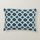 Eine schwarze Blume, die Muster auf einem pastellblauen Hintergrund wiederholt.