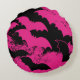 Schwarze Fledermäuse in Flight Pink Rundes Kissen