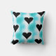 Dieses grafische Design scheint zu leuchten, mit schwarzen Herzen, auf Weiß, Quadrate auf einem abstrakten Schachbrett, Muster von, türkis, Schatten mit Blau angezeigt.