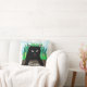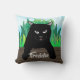 Schwarze Katze auf Zaun mit grünem Gras, solider R Kissen