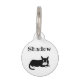 Niedliches schwarzes Katzen-ID-Tag mit Informationen auf der Rückseite.