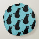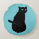 Schwarze Katze mit blauen Augen Rundes Kissen