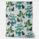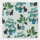 Einzigartige Aquarellmalerei von schwarzen Katzen und Topfpflanzen auf gedämpftem, pulverblauen Hintergrund, ideal für Tiere und Pflanze. Originelle Kunst von Nic Squirrell.