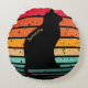 Schwarze Katze Silhouette auf Regenbogen Rundes Kissen