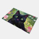 Schwarze Katze sitzt auf einem Feld von Blume Fußmatte