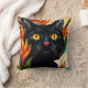 Schwarze Katze umgeben von Blumen Kissen