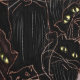 Schwarze Katzen, die in einer anamorphen Bindung mit gelben Augen gezeichnet werden.