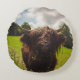 Schwarze Kuh Weide grünes Feld Sonnenlicht Rundes Kissen