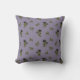 Vintages und blumengeschmücktes Kissen, in dem schwarze Rose mit Grünpflanzen in einem Muster dargestellt werden. Der Hintergrund ist lila.