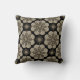 Dieses lebendige gemusterte Kissen erhöht Ihr Wohnzimmer oder Schlafzimmer. Es ist nur ein bisschen Boho, ohne zu viel zu sein. Die Farben sind braun und weiß auf einem schwarzen Hintergrund. Dieses komplizierte Medaillonmuster kommt aus einem Fliesenmuster des Oregon Tile Macher Fay Jones Day.