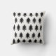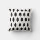 Dieses schwarz-weiße, skandinavische Dekorationsskissen mit schwarzen Weihnachtsbäumen auf weißem Hintergrund. Wenn man genau hinschaut, sieht man, dass einige Bäume einen feinen Glitzer, einen großen Glitzer, eine Tafel oder ein schlichtes Schwarz haben. (Auf diesem Bild ist alles gedruckt; keiner der Bäume enthält tatsächlich Glitzer.)