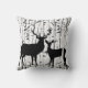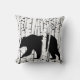 Wenn Sie Birken, Hirsche, Natur und Wildtiere Liebe haben, werden Sie dieses hübsche Kissen in Schwarz und Weiß Liebe finden. Ein hübscher Birkenwald mit einem schwarzen Silhouette-Bär vorne, einem Buchsbär und einem Tauben auf der Rückseite!