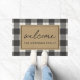 Fügen Sie dem Eingang eine Touch im Bauernstil mit diesem rustikalen Büffel karierte gemusterte Türmchen in Schwarz, Elfenbein und Bräune. "Willkommen" erscheint in der Mitte in lässigen handgeschriebenen Schriftzeichen; personalisieren Sie sich mit Ihrem Familiennamen unten.