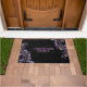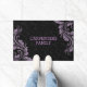 Schwarzer Damast und Lila Blumenspitze Fußmatte