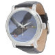 Uhr, Vintage Männeruhr mit schwarzem Lederarmband