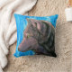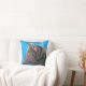 Schwarzer Fantasie-Wolf auf blauem Kissen