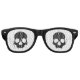 Coole Gläser aus Party mit zähligen Skullen in schwarz auf weißen Linsen mit schwarzem Rahmen. Ideal für Gothisch geneigt oder zu Halloween.