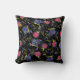 Schwarzer Hintergrund Blumenrosa blaues Muster Des Kissen