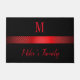 Eleganter schwarzer Hintergrund und rote, horizontale Streifen mit Monogramm