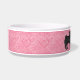 Schwarzer Mops Cartoon Mops auf rosa Herzen mit Na Napf
