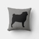 Schwarzer Mops Hund Silhouette auf grauem Herringb Kissen