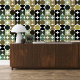 Dieses Design zeigt ein modernes geometrisches Muster mit Kreise und Halbkreisen in den Farbtönen Schwarz, Ocker, Senfbraun, aquamarin Grün und Beige vor weißem Hintergrund. Es ist ein elegantes und stilvolles Design, das eklektischen Minimalismus verkörpert, perfekt für künstlerische Innenarchitekten, Dekorenthusiasten, Trendsetter und Fans Vintager Retro- oder abstrakter geometrischer Motive. Dieses verzierte und dennoch funky Hipster-Muster ist vielseitig einsetzbar und bietet eine Vielzahl von Gegenständen der modernen Wohngestaltung. Es eignet sich daher zur Verbesserung des Ambientes von Zimmern wie Master- oder Kinderzimmern, Küchen, Kinderzimmern, Wohnzimmern, Frauenhöhlen, Uni-Schlafzimmern, Apartments, Studios oder Appartements.