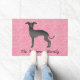 Schwarzer Niedlicher Grauhund auf rosa Herzen Fußmatte