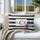 Schwarzer Streifen und Lila Pansy Monogram Kissen