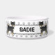 Desteis originelle Cartoon Illustration einer schwarz-bräunlichen Fellfarbe Shiba Inu Rasse Hund. Der Hintergrund weist ein Muster von grauen Hundepads auf und es gibt einen personalisierbaren Textbereich für einen Namen.