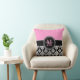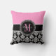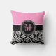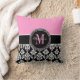 Schwarzes Damast-Rosa-Monogramm-personalisiertes Kissen