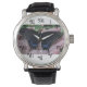 Uhr, Vintage Männeruhr mit schwarzem Lederarmband