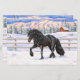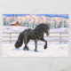 Schwarz Friesischer Licht Zugpferd in Schnee.
