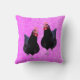 Auf einem reversiblen, heißen Magenta und rosa Hintergrund sind zwei schwarze Hühner abgebildet
