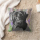 Dieses reizende Throwkissen kennzeichnet mein Hand gezeichnetes Porträt eines schwarzen Labrador-Sets in einem Kentish Bluebellholz.