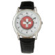 Schwarzes Lederband mit der Flagge der Schweiz Armbanduhr