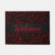 Schwarzes mit Feiertags-roter Musiknoten-Fußmatte. Ein Blätternblumenmuster der musikalischen Anmerkungen und der Clefs im festlichen Feiertag oder königliches Rot auf Schwarzem oder Ihre Wahl der Hintergrundfarbe. Ein Begrüßungseingang für Ihr musikalisches Zuhause oder Studio oder als Geschenk für Ihren Lieblingsmusiker- oder Musikliebhaber. Themed Dekor der eleganten, vielseitigen Musik, bereiten vor, um zu mischen und Match für Ihr Zuhause, Studio oder spezielles Ereignis.
