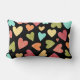 Die Kopfkissen sind eine gute Möglichkeit, das Aussehen jeder Zuhause- oder Büroeinrichtung sofort zu verändern.Dieses unterhaltsame Kissen ist mit Wasserfarbenherzen in den Farben Blau, Rosa, Grün, Gelb und Orange ausgestattet, die auf einem kontrastreichen schwarzen Hintergrund hervorgehoben sind. Die Rückseite des Kissens weist das gleiche Herzmuster auf.
