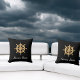 Schwarzes Yachtboot Name Gold Lenkrad Küste Kissen