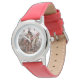 Uhr, Kinderuhr aus Edelstahl mit rosa Lederarmband