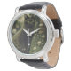 Uhr, Vintage Männeruhr mit schwarzem Lederarmband