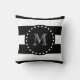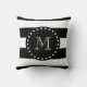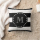 Schwarzweiss-Streifen-Muster, schwarzes Monogramm Kissen