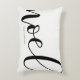 Dieses stilvolle Feiertagskissen kennzeichnet das Wort "Weihnachten" in der trendy schwarzen Kalligraphie, mit einer Stelle, um mit Ihrem Namen zu personifizieren. Das hintere Muster enthält weiße Tupfen auf einem schwarzen Hintergrund.