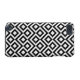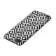 Dieses stilvolle geometrische Schwarzweiss-Muster ist ein ursprünglicher dekorativer Entwurf. Weiß schlängelt sich Winkel um die schwarzen Diamanten, die weiße Diamanten enthalten. Schwarze Zickzacke liefern subtile Trennung zwischen den Wicklungswegen.