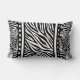 Schwarz und Weiß Zebra Print Lumbalkissen. Verschiedene Muster von Zebra-Designs, die kontrastieren und schön mischen.