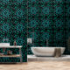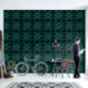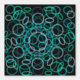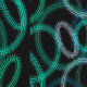 Geometrisches und abstraktes Design, grüne und blaue Kreise auf schwarzem Hintergrund