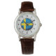 Schweden-Flagge Klassischer brauner Lederschimmer Armbanduhr