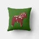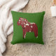 Rotes schwedisches Dala Pferd, bekannt in skandinavischen Folk Arts auf einem grünen Kissen. Rot und Grün zu Weihnachten. Klicken Sie, um die Hintergrundfarbe entsprechend Ihrer Dekoration zu ändern. Stellen Sie sicher, dass Sie sowohl vorne als auch hinten wechseln.