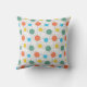 Dieses Kissen hat ein modernes Design von Kreisen in der Mitte des Jahrhunderts mit Linien in Orange, Gelb, Türkis und Grün.
