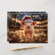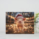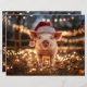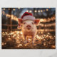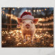 Scrapbook-Papier mit einem hübschen Schwein, das eine Weihnachtsmannmütze trägt und von Weihnachts-Tinkelleuchten umgeben ist.